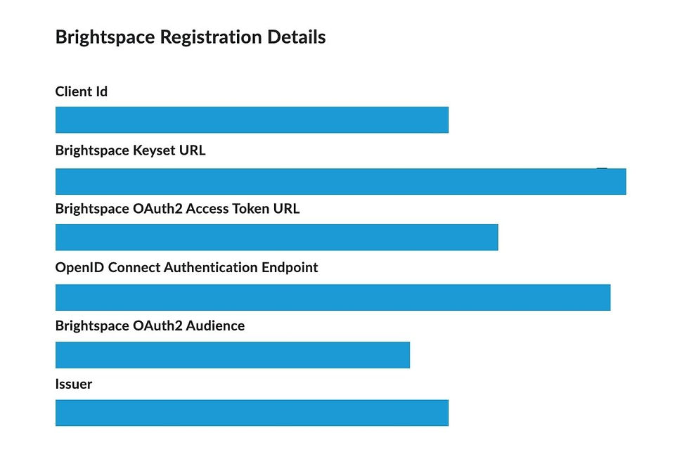 Once registered, please share your Brightspace registration details with us, and we will add this information to our application to enable authentication access.
